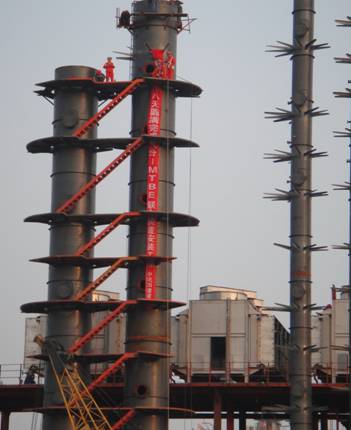 2009年8月26日下午8時許,四川大英縣盛馬化工股份有限公司1.5萬噸/年MTBE聯合裝置施工現場一片歡呼。由公司安裝制造分公司四川項目部承建的氣分-MTBE聯合裝置6臺主要塔器設備順利吊裝就位,為聯合裝置安裝工程奠定了完美的開端。