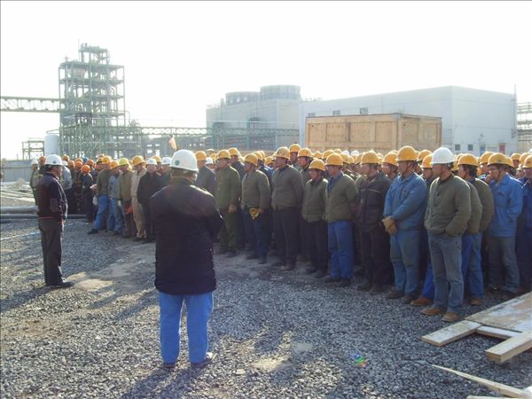 會(huì)上,分公司副經(jīng)理欒立超代表分公司對(duì)干好EO裝置的重要意義進(jìn)行了分析,并部署了質(zhì)量安全的控制、機(jī)械材料的供應(yīng)、施工技術(shù)服務(wù)等方面的工作。他號(hào)召施工人員要把項(xiàng)目的各項(xiàng)工作落到實(shí)處,做到措施落實(shí)到位、分工明確、責(zé)任到人;同時(shí)各個(gè)施工小組要認(rèn)真細(xì)化任務(wù),把任務(wù)分解到每一周、每一日,在全場(chǎng)形成你追我趕的大干局面。業(yè)主阿克蘇—諾貝爾乙烯胺(寧波)有限公司的現(xiàn)場(chǎng)項(xiàng)目經(jīng)理和管理公司福斯特惠勒國(guó)際工程咨詢(上海)有限公司的現(xiàn)場(chǎng)施工經(jīng)理也在會(huì)上給施工人員打氣鼓勵(lì)。