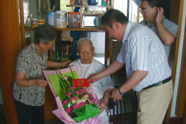 為了紀(jì)念抗日戰(zhàn)爭(zhēng)勝利65周年,8月17日,公司黨委副書(shū)記邢金湘、副經(jīng)理何玉文帶領(lǐng)公司離退辦負(fù)責(zé)人看望了公司參加抗日戰(zhàn)爭(zhēng)的吳深源、孫長(zhǎng)寅、白文清、石伯秋4名老戰(zhàn)士,代表公司為他們送去了慰問(wèn)金。